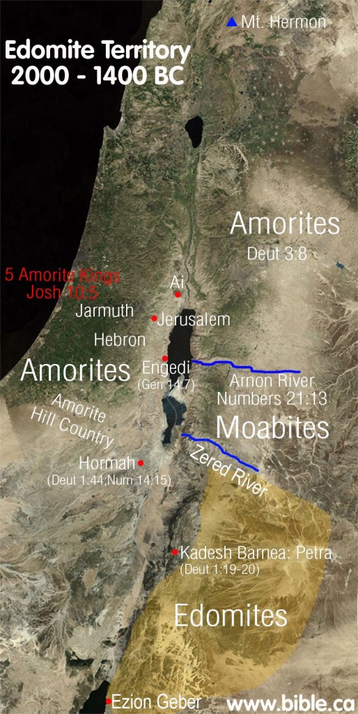 Esau and his boys conquered a region called “Mount Seir” or “Mount Hor.” It was an area inhabited by a tribe called the Horites/Horim way back in Genesis 14. They are listed along with known giant-clans. Their name means “Cave-dweller.”