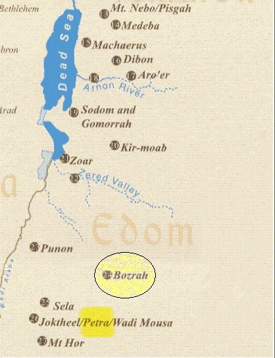 Bozrah (Is. 34:6) was the capital city of Edom. It was built on high piece of land surrounded by steep ravines. Very defensible and not easily accessible. Remember this.