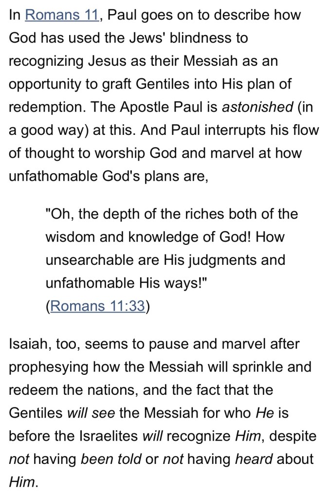 So, who believed the message? And to whom (consequently) was the power/ability (arm) of Yahweh revealed? Israel as a whole rejected the message. The Gentiles believed. The Gentiles had no history of prophets telling them about this coming Redeemer. They hadn’t heard. Yet they believed the Gospel.